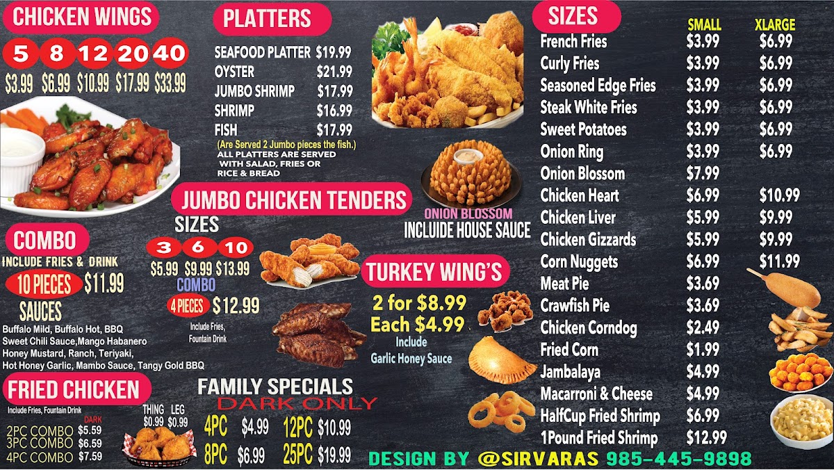 Introducing the menu at STOP 2 SHOP, a delightful hidden gem located at 580 Robert Blvd, Slidell, LA. This vibrant eatery is renowned for its tantalizing and hearty offerings that surely cater to every craving. Their specials shine brightly, featuring succulent Box Specials with end-cut pork chops, ground meat, and smoked sausage—perfect for family feasts. Meat lovers can also indulge in the tasty Deli Meat Special or the Mini Chicken Special which boasts a variety of chicken cuts.